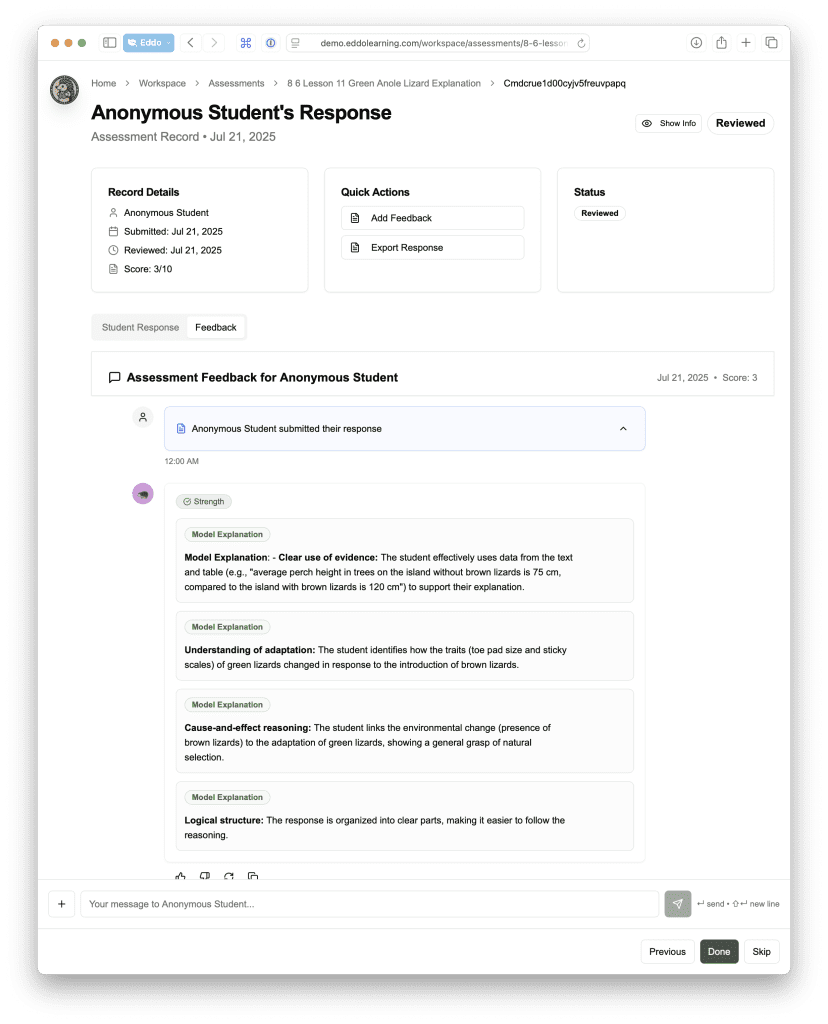 We’d love to show you around the new Eddo Workspace and show you how easy it can be to provide personalized feedback for every student assessment.